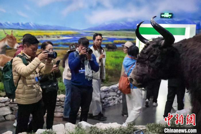 圖為此次活動受邀嘉賓在玉樹州博物館內(nèi)拍攝牦牛標(biāo)本。薛蒂 攝