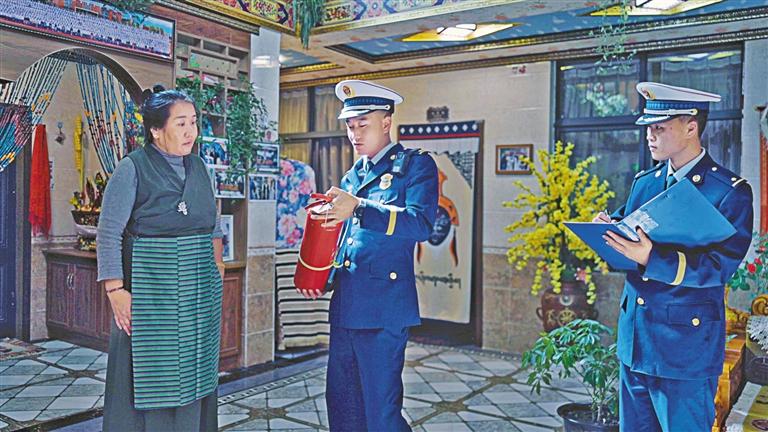 在扎西曲登社區(qū),乃東區(qū)消防救援大隊(duì)將消防安全措施與藏戲元素有機(jī)融合,從藏漢雙語消防通道的醒目標(biāo)識,到廣場的藏戲消防人偶,再到房間內(nèi)具有消防元素的生活用品,消防安全宣傳體現(xiàn)在民俗民宿村的每一個細(xì)節(jié),讓游客在輕松愉快的氛圍中提升消防安全意識。同時(shí),為每戶民宿經(jīng)營戶配備了獨(dú)立式感煙報(bào)警器、燃?xì)庾詣忧袛嚅y、應(yīng)急包等家用消防器材,確保能夠及時(shí)發(fā)現(xiàn)處置初期火災(zāi)。此外,還在扎西曲登社區(qū)建立微型消防站,配備基本的滅火救援裝備,著力建立滅火救援快速響應(yīng)機(jī)制,全力保障居民和游客的生命財(cái)產(chǎn)安全。