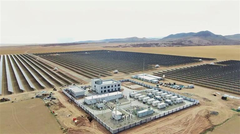 在此期間,項目團隊克服了4700米高海拔、長期高寒環(huán)境、大風(fēng)施工、遠(yuǎn)距離運輸?shù)戎T多惡劣自然條件和建設(shè)困難,積極協(xié)調(diào)優(yōu)質(zhì)資源,確保項目光伏組件的排產(chǎn)、供貨工作,有力保障了現(xiàn)場安裝需求。為提升電站的發(fā)電效率,工程創(chuàng)新采用構(gòu)網(wǎng)型儲能系統(tǒng)和695Wp雙面N型光伏組件,可自主調(diào)整電壓和頻率。這使得電站能夠在電網(wǎng)故障或弱網(wǎng)情況下快速響應(yīng)并維持局部電網(wǎng)的穩(wěn)定運行,讓新能源具有傳統(tǒng)發(fā)電機一樣“穩(wěn)”的特性。同時,還能適應(yīng)不同的電網(wǎng)環(huán)境和應(yīng)用場景,有著強大的適應(yīng)性和靈活性。