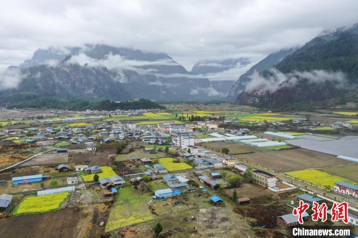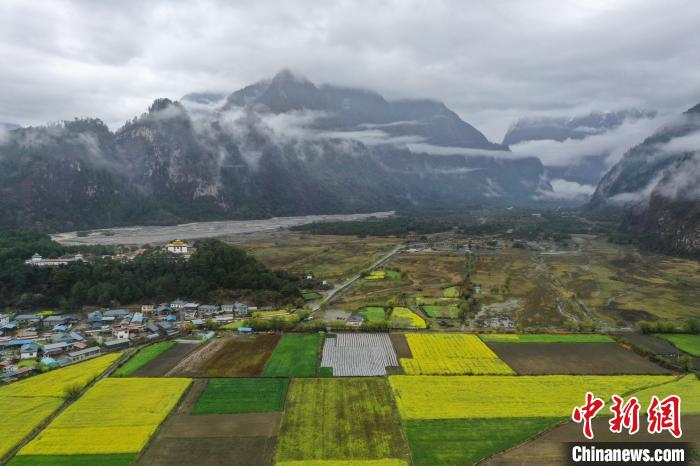 4月4日,西藏林芝市波密縣易貢鄉(xiāng)在雨后迎來(lái)絕美景致。云霧繚繞在群山之間,金黃的油菜花與森林、易貢湖、藏式民居、碧綠的青稞田相互映襯,宛如仙境。(無(wú)人機(jī)照片)中新社記者 貢嘎來(lái)松 攝