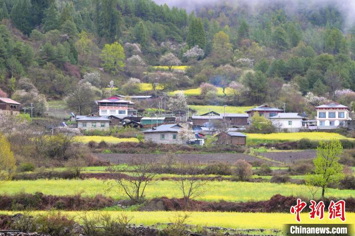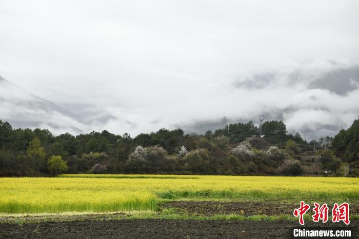 4月4日,西藏林芝市波密縣易貢鄉(xiāng)在雨后迎來(lái)絕美景致。云霧繚繞在群山之間,金黃的油菜花與森林、易貢湖、藏式民居、碧綠的青稞田相互映襯,宛如仙境。中新社記者 貢嘎來(lái)松 攝