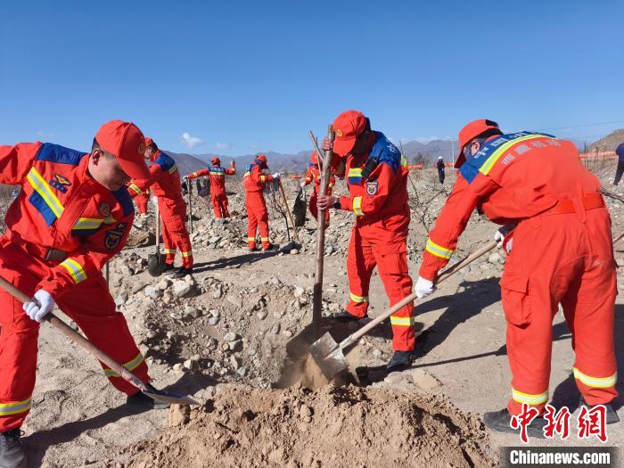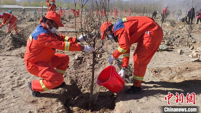 圖為日喀則市森林消防大隊義務植樹活動現(xiàn)場。洛桑頓珠 攝