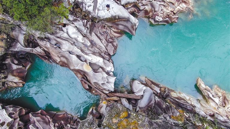 在丙察察公路接近察隅縣城的位置,國道219線與559線交匯點(diǎn),有一處由水流反復(fù)沖刷激蕩出的地質(zhì)奇觀——水磨巖。