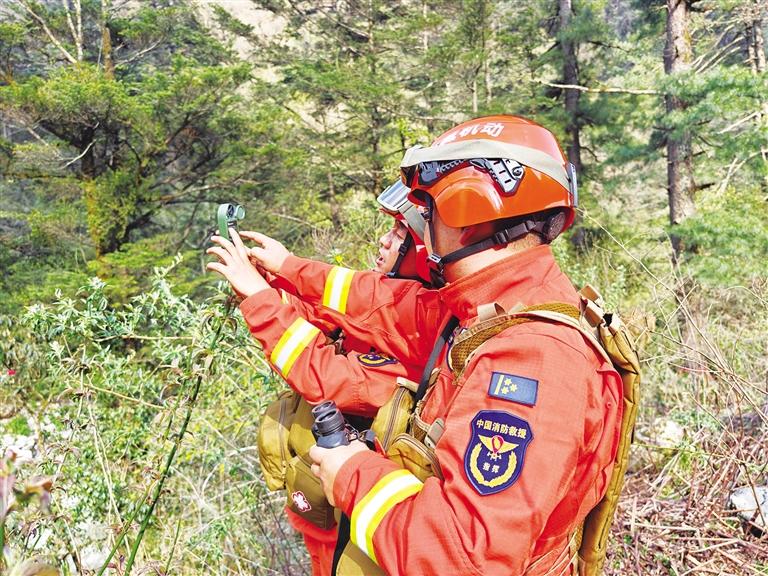 巡護(hù)隊(duì)伍踏上了蜿蜒曲折的山路。道路崎嶇陡峭,許多路段僅容一人通行,一側(cè)是近乎垂直的山坡,另一側(cè)是深不見底的山谷,令人望而生畏。消防員們背著重達(dá)30斤的各類防火裝備,隨著海拔不斷升高,每一步前行都需要耗費(fèi)巨大的體力。但是沒有一人掉隊(duì),他們相互鼓勵(lì)、彼此扶持,在艱難的山路上穩(wěn)步前進(jìn)。行進(jìn)途中,他們手持測(cè)風(fēng)儀、望遠(yuǎn)鏡等專業(yè)設(shè)備,仔細(xì)觀察著每一處植被狀況,不放過任何可能存在的火源隱患。