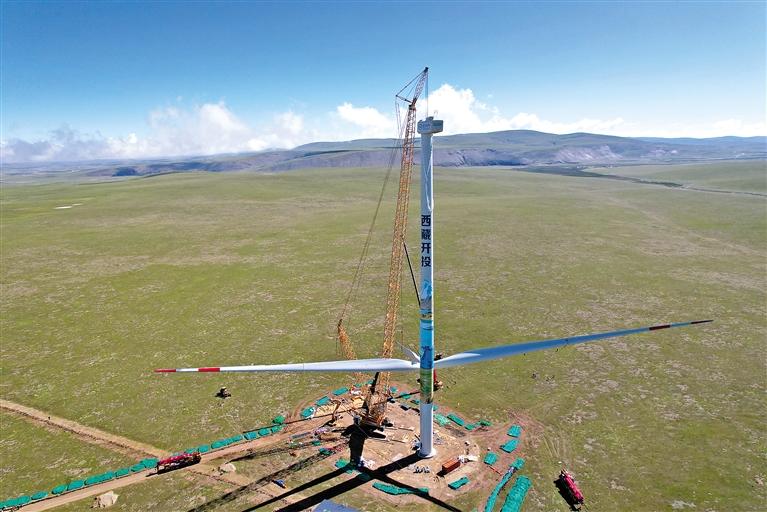 在海拔4700米的藏北高原,隨著13#風(fēng)機(jī)葉輪與機(jī)艙精準(zhǔn)對接,西藏開投色尼區(qū)曲果嘎姆200MW風(fēng)電項目首臺風(fēng)電機(jī)組7月5日在那曲順利完成吊裝。