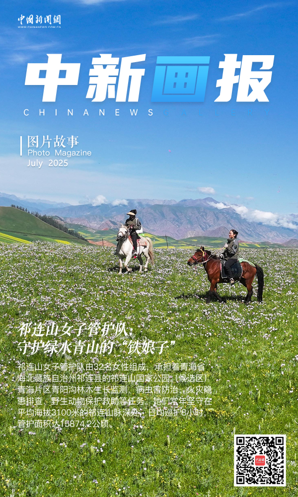 7月17日,祁連山女子管護(hù)隊(duì)隊(duì)員騎馬進(jìn)行日常巡護(hù)。該管護(hù)隊(duì)由32名女性組成,承擔(dān)著青海省海北藏族自治州祁連縣的祁連山國(guó)家公園(候選區(qū))青海片區(qū)青陽(yáng)溝林木生長(zhǎng)監(jiān)測(cè)、病蟲(chóng)害防治、火災(zāi)隱患排查、野生動(dòng)物保護(hù)救助等任務(wù)。她們常年堅(jiān)守在平均海拔3100米的祁連山脈深處,日均巡護(hù)8小時(shí),管護(hù)面積達(dá)15874.2公頃。