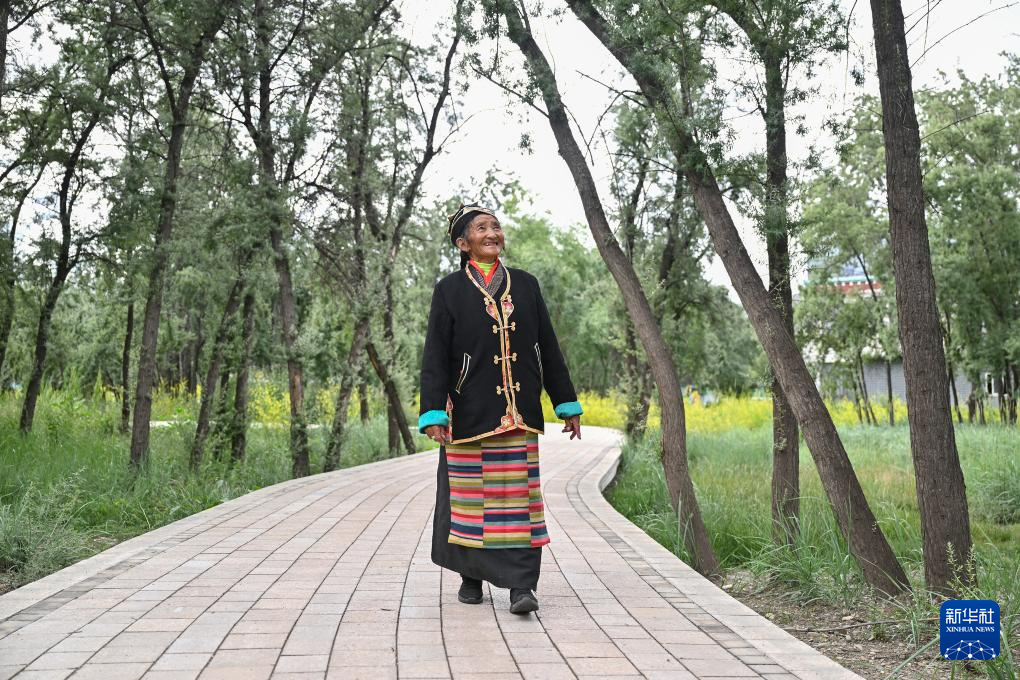 桑旦在隆子縣沙棘林生態(tài)公園內散步。新華社記者 李鑫 攝