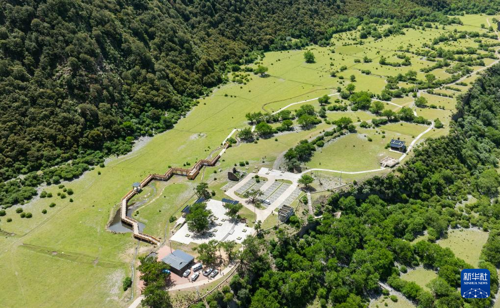 這是位于林芝市工布江達(dá)縣仲莎鄉(xiāng)林則村的林則生態(tài)文化旅游景區(qū)(7月23日攝,無(wú)人機(jī)照片)。新華社記者 丁增尼達(dá) 攝