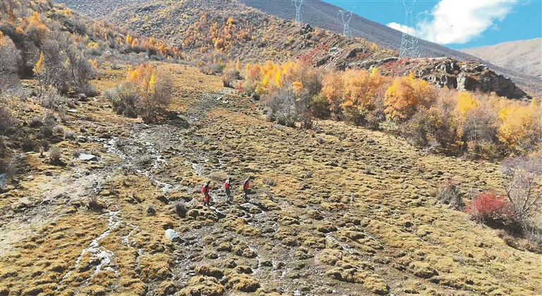 圖為拉薩市墨竹工卡縣日多鄉(xiāng)護林隊在開展巡山工作。記者 格桑倫珠 攝