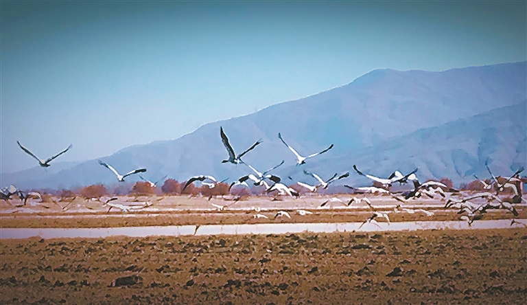 拉薩市林周縣境內的黑頸鶴。記者 白瑪澤旺 攝