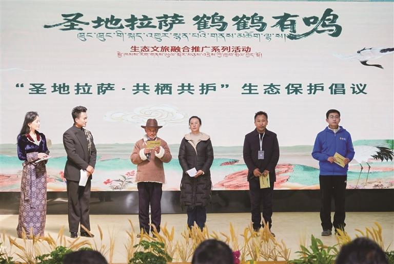 啟動儀式上,拉薩市生態(tài)環(huán)境局、 拉薩市林業(yè)和草原局、高原守鶴人旦增、美麗公約組織代表共同發(fā)起“圣地拉薩·共棲共護”生態(tài)保護倡議,呼吁全社會共同參與生態(tài)保護與可持續(xù)發(fā)展。