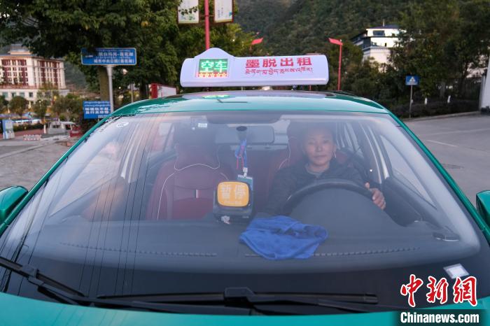 12月21日傍晚,墨脫縣唯一的珞巴族女出租車司機(jī)尼瑪卓瑪準(zhǔn)備出車?!≈行律缬浾?江飛波 攝