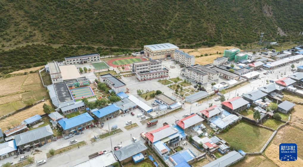 這是無人機拍攝的林芝市工布江達縣娘蒲鄉(xiāng)中心小學全貌(無人機照片,9月4日攝)。新華社記者 晉美多吉 攝