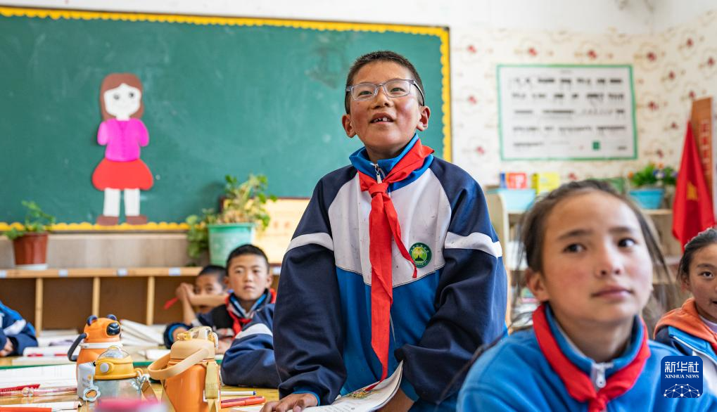 娘蒲鄉(xiāng)中心小學學生貢喬熱旦正在課堂上回答問題(9月3日攝)。新華社記者 丁增尼達 攝