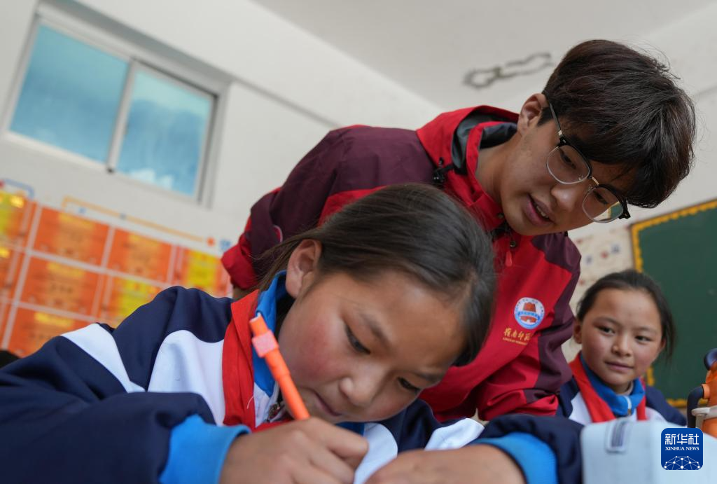 胡正培輔導學生課業(yè)(9月3日攝)。新華社記者 晉美多吉 攝