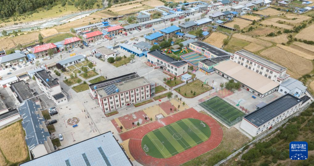 9月4日拍攝的娘蒲鄉(xiāng)中心小學(xué)(無人機(jī)照片)。新華社記者 晉美多吉 攝