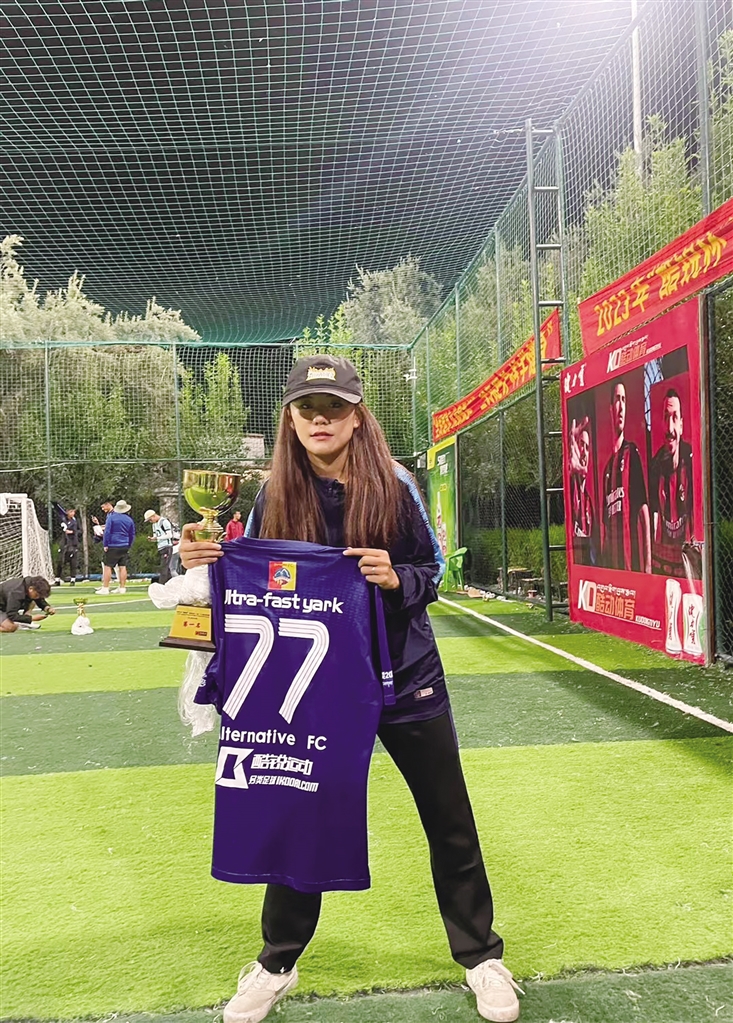 而最能證明她們訓(xùn)練成果的就是足球聯(lián)賽。?。玻埃玻衬辍坝卤笨徜J運(yùn)動(dòng)拉薩業(yè)余足球5人制(女子組)比賽、第二屆“亞克杯”女子5人制交流賽在拉薩開(kāi)賽,這也是西藏少有的女足賽事。米央以拉薩另類(lèi)女子足球隊(duì)隊(duì)員身份參賽,盡管米央是隊(duì)內(nèi)年紀(jì)最小的成員,但她的能力絲毫不遜于任何人。米央所在的這支由高中生、大學(xué)生等組成的隊(duì)伍,經(jīng)過(guò)10場(chǎng)比賽,拼盡全力最終奪得冠軍?!懊慨?dāng)足球在我腳下滾動(dòng)飛躍,每當(dāng)我奔跑在綠茵場(chǎng)上,那種肆意和快樂(lè)讓我堅(jiān)定我的選擇,我的夢(mèng)想是踢進(jìn)中國(guó)國(guó)家女子足球隊(duì)?!泵籽胝f(shuō)。雖然她與夢(mèng)想還有距離,但內(nèi)心那股熊熊燃燒的信念力量,成為她刻苦訓(xùn)練的“定心丸”。