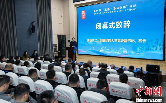 西藏民族大學黨委副書記、校長羅旺次仁在第四屆“藏秦·喜馬拉雅”論壇閉幕式上發(fā)表致辭。 主辦方供圖