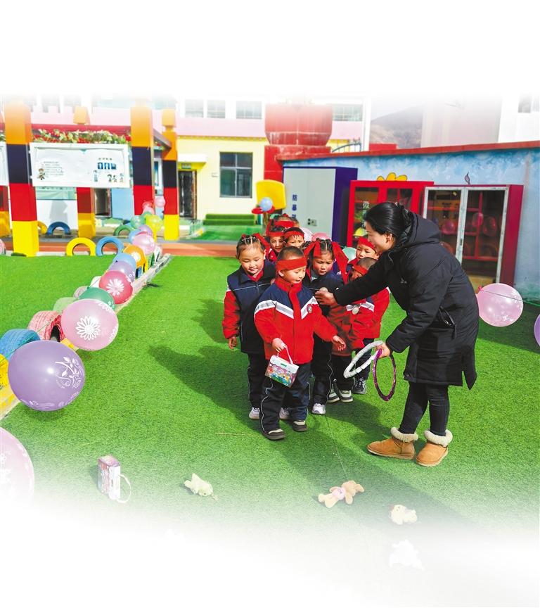 新學(xué)期開(kāi)學(xué)當(dāng)日,林周縣幼兒園老師組織幼兒做游戲。文/圖 記者 央金