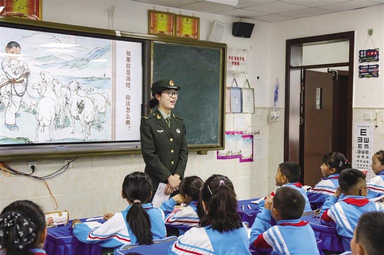 圖為官兵給學生講授國防知識。 文/圖 通訊員 吳成淼 單渤 常欣 記者 王香香