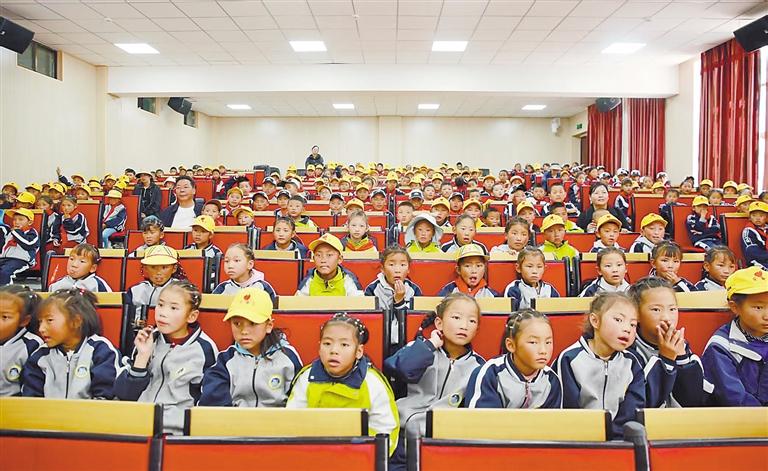 為學(xué)生認(rèn)真聆聽報告。記者 格桑倫珠 攝。