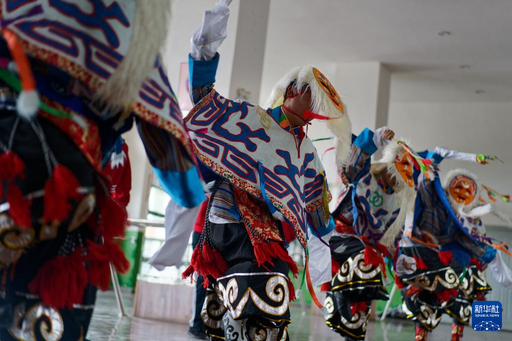9月9日,在拉薩市第二中等職業(yè)技術(shù)學校,學生們在練習藏戲。新華社記者 張笑宇 攝
