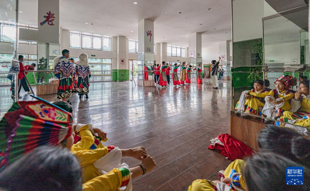9月9日,在拉薩市第二中等職業(yè)技術(shù)學校,孩子們在練習藏戲。新華社記者 丁增尼達 攝