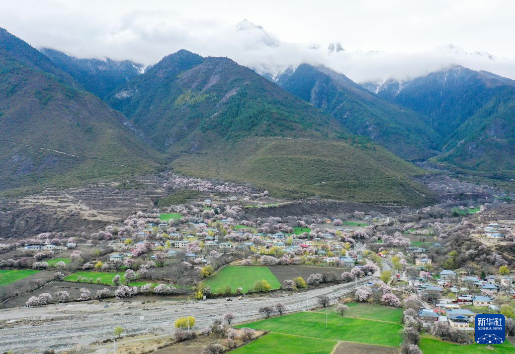 4月2日拍攝的林芝市波密縣傾多鎮(zhèn)(無(wú)人機(jī)照片)。新華社記者 丁汀 攝