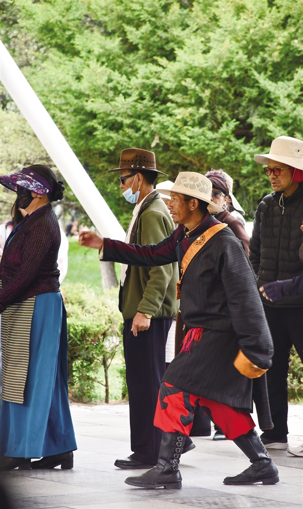 在采訪(fǎng)過(guò)程中,記者感受到許多年輕人都熱愛(ài)著鍋莊,而鍋莊的“火出圈”也并非偶然,鍋莊校園操、公園里單獨(dú)開(kāi)辟的鍋莊舞場(chǎng)地、各種各樣“走出”西藏、風(fēng)行全國(guó)的鍋莊舞……年輕人心中已逐漸培植起傳承西藏優(yōu)秀傳統(tǒng)文化的心智與自覺(jué)。這些都促使越來(lái)越多朝氣蓬勃的年輕人成為中華優(yōu)秀傳統(tǒng)文化的積極繼承者、參與者、傳播者,為中華優(yōu)秀傳統(tǒng)文化搭建起從過(guò)去走向未來(lái)的對(duì)話(huà)橋梁。(圖/記者 桑旦歐珠)
