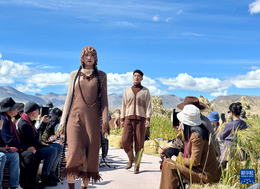 高原山腳下、青稞麥浪中,氆氌搖身一變成為時(shí)尚服飾,在海拔約4000米的秀場上吸引了現(xiàn)場中外嘉賓和線上觀眾的關(guān)注。9月8日,一場以“雪域·交響”為主題的發(fā)布秀在西藏江孜縣班覺倫布村舉行,現(xiàn)場不僅有身著氆氌時(shí)裝的專業(yè)模特現(xiàn)場走秀,還有30位氆氌手工匠“阿佳”(藏語意為大姐)在T臺(tái)旁展示梳毛捻線等工序,氆氌紡織機(jī)聲與鋼琴獨(dú)奏交錯(cuò)相生。