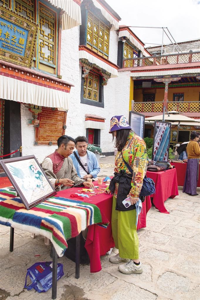 “你看,這個(gè)玩偶好別致,而且很有分量感!”走進(jìn)夏扎大院,來自西安的游客王女士正在卓番林·措瓦店內(nèi)選購。卓瑪介紹,卓番林·措瓦巧妙融合傳統(tǒng)精髓與現(xiàn)代審美、藝術(shù)靈感與生活實(shí)用,致力于通過溫馨而富有情感的產(chǎn)品,守護(hù)并傳承精湛的手工藝,同時(shí)讓西藏的手工藝成為每個(gè)家庭溫馨記憶的守護(hù)者。