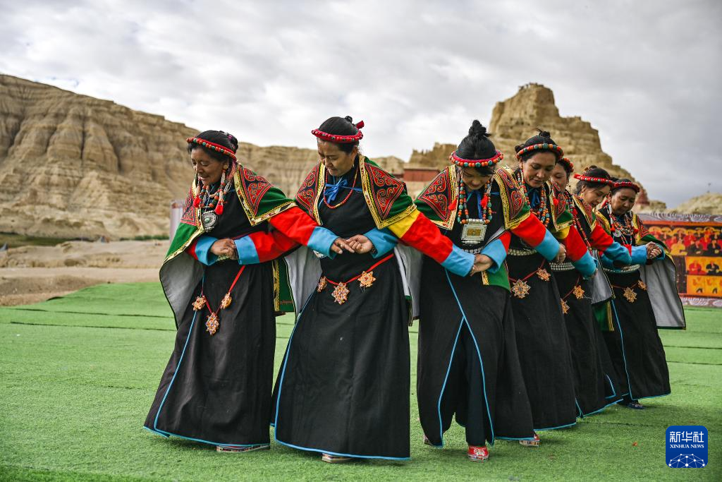 在西藏阿里地區(qū)札達(dá)縣古格王國遺址腳下,當(dāng)?shù)卮迕癖硌荨靶琛保?月11日攝)。新華社記者 孫瑞博 攝 ??
