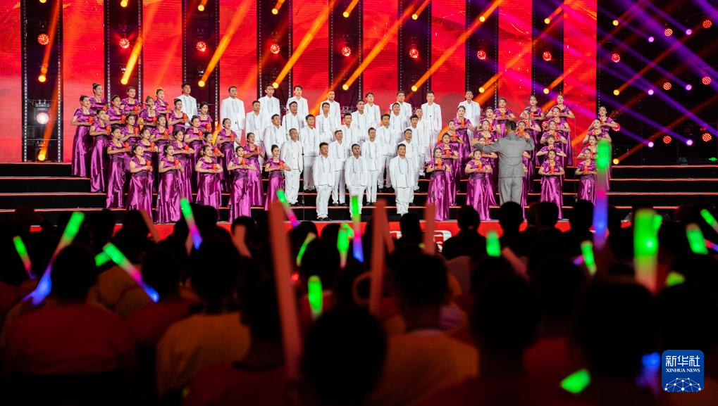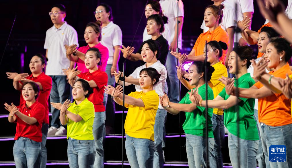 參賽隊(duì)伍在合唱大賽上演繹曲目(9月25日攝)。新華社記者 丁增尼達(dá) 攝