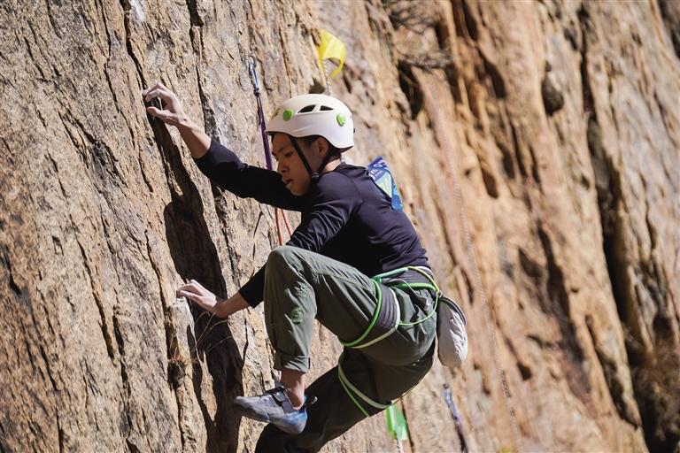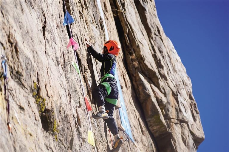 攀巖運動作為一項集力量、技巧、勇氣和智慧于一體的新興體育項目,被稱為“巖壁上的芭蕾”。比賽現(xiàn)場,運動員們迎難而上,靈活運用各類攀巖技巧,在巖壁上完成騰挪、跳躍等一系列精彩動作。