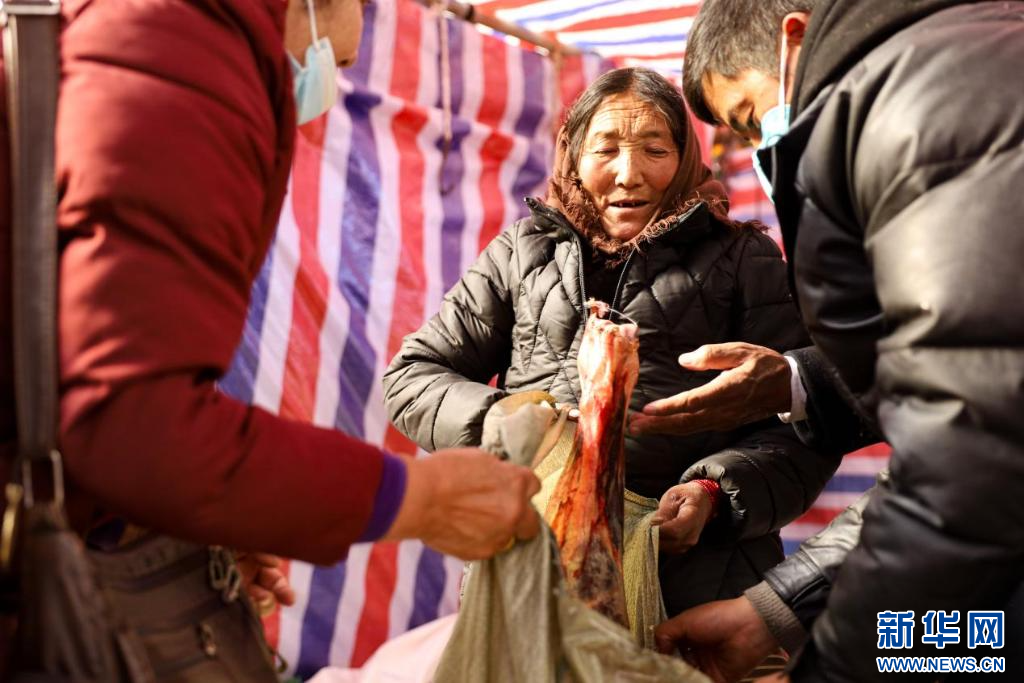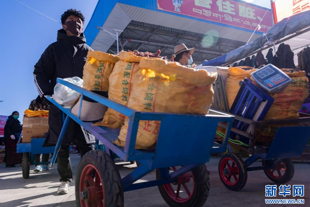 在現場,人來人往,商品琳瑯滿目。扎念琴聲、推車聲、嬉笑聲此起彼伏,一派熱鬧繁忙的景象。