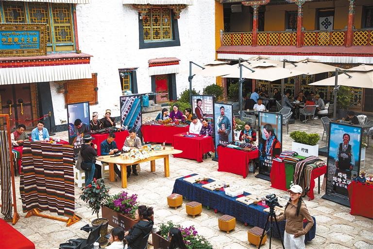 圖為手工藝人在夏扎大院展示技藝與產(chǎn)品。