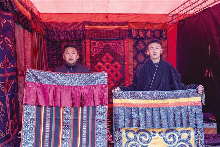 “阿佳,這個(gè)門(mén)簾質(zhì)量超棒,您瞧瞧?!薄斑@款門(mén)簾不僅樣式精美,材質(zhì)還特別厚實(shí),冬天掛門(mén)上保暖效果可好啦?!?月10日,堆龍德慶區(qū)第三屆“上谷福地·吉慶年貨集市”熱鬧開(kāi)市,市民們?cè)跀偽婚g穿梭,挑選心儀的商品,現(xiàn)場(chǎng)人頭攢動(dòng)、熱鬧非凡。在市集的一側(cè),格桑平措正熱情地向顧客介紹攤位上的藏式門(mén)簾。他的熱情極具感染力,不少市民被打動(dòng),很快就選到滿意的門(mén)簾,滿臉笑容地離開(kāi)攤位。格桑平措告訴記者:“這是我們首次參加年貨節(jié),帶來(lái)的都是店里銷量最好的產(chǎn)品。藏歷新年快到了,我們希望把最優(yōu)質(zhì)的產(chǎn)品推薦給大家,為顧客的家增添濃濃的年味?!?/p>
