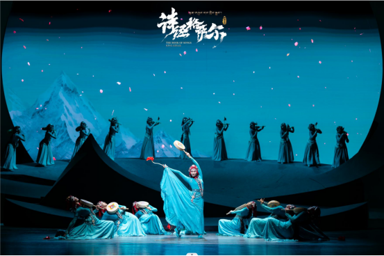 在創(chuàng)作過(guò)程中,團(tuán)隊(duì)深度挖掘《詩(shī)經(jīng)》和《格薩爾》史詩(shī)經(jīng)典代表作品的文化元素,在“同、融、美”方面狠下功夫。主創(chuàng)們深入挖掘兩部作品中相同、相似、接近的圖騰、樂(lè)器、歌舞、生活習(xí)性等文化元素 ,以《詩(shī)經(jīng)》采詩(shī)官與《格薩爾》史詩(shī)傳唱藝人作為明線,將“火、水、結(jié)”作為暗線,將這些文化元素有機(jī)串聯(lián)起來(lái),再借助高科技數(shù)字手段呈現(xiàn)背景影像,實(shí)現(xiàn)了在“美美與共”的欣賞中,讓觀眾感知中華多民族文化的交往交流交融,表達(dá)了中華文化同宗同源的歷史,有力體現(xiàn)了多民族共鑄中華民族共同體意識(shí)的主題。