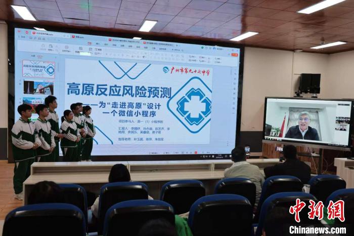 圖為四川大學(xué)華西醫(yī)院院長(zhǎng)、高原醫(yī)學(xué)中心主任羅鳳鳴教授通過(guò)視頻連線點(diǎn)評(píng)、指導(dǎo)高中生的微信小程序作品。廣州97中 供圖