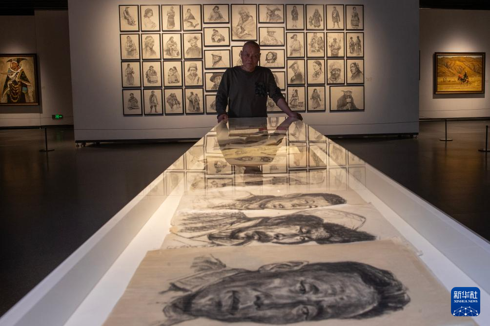 ?這是一張拼版照片,上圖為:1983年冬,張鷹在尼木縣寫生(受訪者供圖);下圖為:張鷹在西藏美術(shù)館自己畫展上的“素描墻”前(新華社記者姜帆攝5月13日攝)。新華社發(fā)
