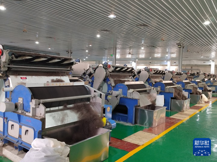 5月30日,西藏圣信工貿(mào)有限公司生產(chǎn)車間的自動(dòng)分梳設(shè)備正在運(yùn)轉(zhuǎn)。(受訪者供圖)
