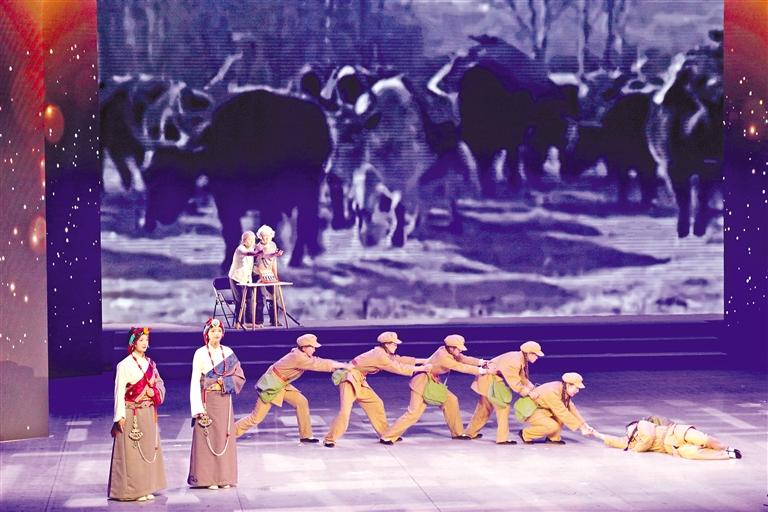 昌都市代表隊率先登臺。他們帶來的《星火照天路》,通過進藏女兵跨越70年的隔空對話,講述當年修建“兩路”的難忘歲月。