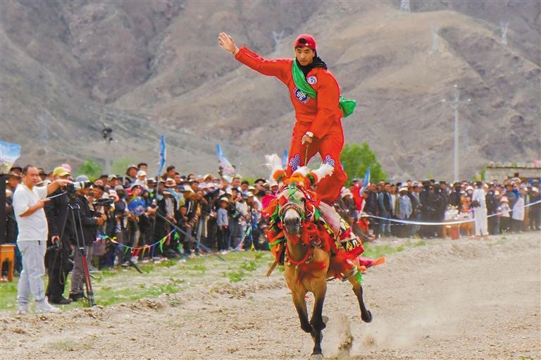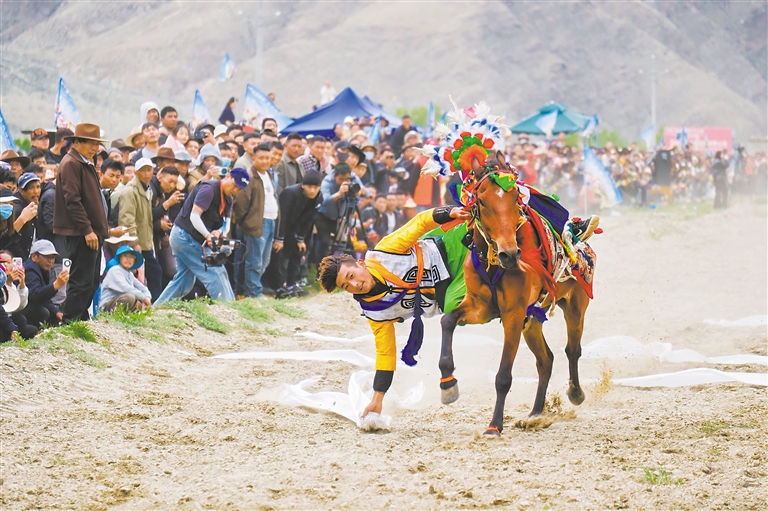 賽馬選手撿哈達(dá)。