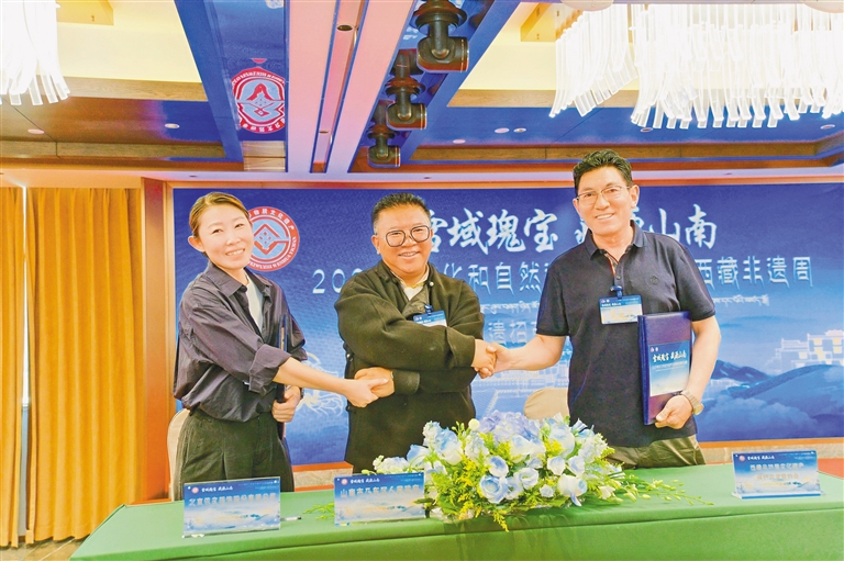 在全區(qū)非遺招商引資及項目簽約會上,4家企業(yè)負(fù)責(zé)人分別介紹公司發(fā)展歷程、市場前景、合作意向、未來計劃等情況。乃東區(qū)人民政府、乃東區(qū)文化和旅游局、西藏卓番林文化有限公司、北京依文服飾股份有限公司等一同簽訂了項目合作協(xié)議。