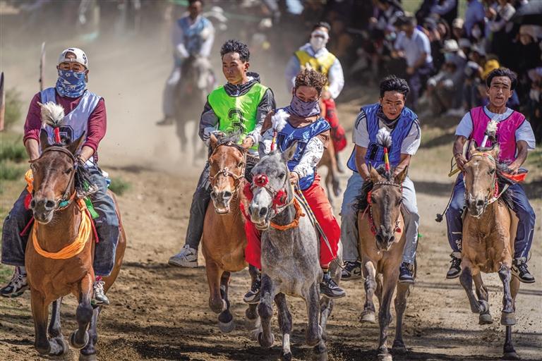 壓軸登場(chǎng)的8000米項(xiàng)目堪稱耐力與意志的較量。經(jīng)過前期比拼,參賽馬匹略顯疲憊,但騎手們依舊斗志昂揚(yáng)。今年15歲的騎手旦達(dá)與座下駿馬“卡瓦隆達(dá)”配合默契,遙遙領(lǐng)先,甩開對(duì)手強(qiáng)勢(shì)奪冠,其余馬匹緊隨其后沖過終點(diǎn)。賽后,騎手旦達(dá)告訴記者:“我從小喜愛賽馬,每年都會(huì)參加各種賽馬活動(dòng),此前獲得了拉薩賽馬場(chǎng)8000米速度賽馬第一名,今天同樣取得了8000米速度賽馬第一名,很激動(dòng)?!?/p>
