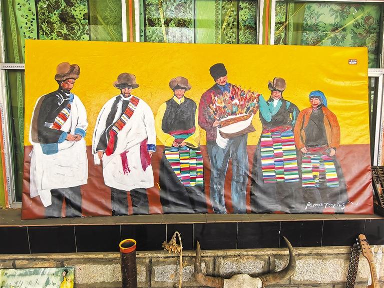 近年來(lái),白瑪次仁背著他的畫(huà)作跑到拉脫維亞、西班牙、日本各地巡展?!拔鞑鼗蛘呶?,很榮幸能以這種方式被大家認(rèn)識(shí)和接受?!?/p>