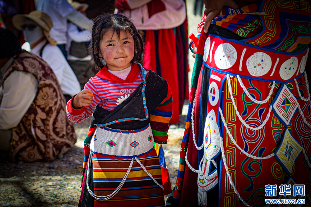 身穿自治區(qū)級(jí)非物質(zhì)文化遺產(chǎn)“森郭服飾”的小女孩(6月21日攝)。新華網(wǎng) 旦增努布 攝