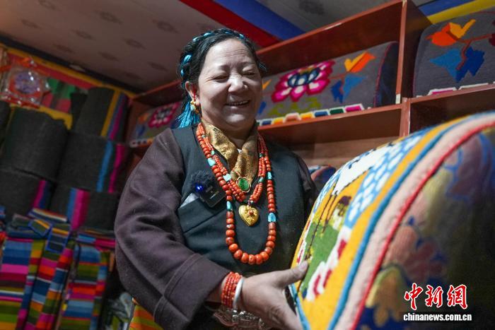3月25日,“記錄雪域民族團結(jié) 見證珠峰發(fā)展新篇——石榴花開心連心”網(wǎng)絡(luò)主題活動采訪團,走進西藏日喀則市崗巴縣乃村順心編織合作社,探訪當(dāng)?shù)貍鹘y(tǒng)民族手工藝發(fā)展新貌。據(jù)了解,合作社理事長德吉自2015年深耕卡墊、氆氌等傳統(tǒng)手工編織技藝,憑借精湛手藝與家鄉(xiāng)情懷,成為當(dāng)?shù)厥止に噹ь^人。2019年,在鄉(xiāng)黨委、政府及上級部門扶持下,她牽頭成立順心編織合作社,2025年在各方持續(xù)支持下,合作社發(fā)展再上新臺階。如今,合作社已吸納28名婦女就近穩(wěn)定就業(yè),讓傳統(tǒng)“指尖技藝”成功轉(zhuǎn)化為“指尖經(jīng)濟”。截至目前,合作社累計銷售各類手工編織產(chǎn)品280余件,實現(xiàn)直接經(jīng)濟增收約134萬元人民幣,切實拓寬了鄉(xiāng)村婦女增收渠道。德吉帶領(lǐng)團隊堅守傳承、勇于創(chuàng)新,將現(xiàn)代審美與實用需求融入民族服飾、卡墊等特色產(chǎn)品中,產(chǎn)品在區(qū)內(nèi)銷路穩(wěn)步拓展,品牌影響力持續(xù)提升,為雪域高原鄉(xiāng)村振興注入了鮮活動力。圖為德吉正在展示產(chǎn)品。貢確 攝