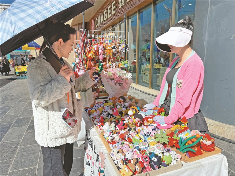 如今,天海國際廣場的小推車,依舊是林楊陽的“主戰(zhàn)場”,即便常遇到攤位不固定之類的小困擾,也從未阻擋她前行的腳步。眼下的她,正忙著和商場溝通,希望能擁有一個(gè)固定攤位,讓老顧客不再跑空,同時(shí)籌備著線上直播,想讓藏在雪域高原的精美鉤織手作,被更多人看見;教學(xué)上,她還計(jì)劃增設(shè)新的鉤織培訓(xùn)課,讓更多有需求的人掌握這門增收手藝。