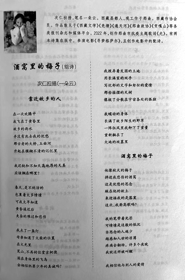 次仁拉措,一位為詩(shī)歌而生的藏族青年女詩(shī)人,她的文學(xué)創(chuàng)作始終扎根于雪域高原的深處,她以靈性、純粹和赤誠(chéng)的筆觸探尋著文學(xué)的本質(zhì)、文化的根脈與生命的意義。